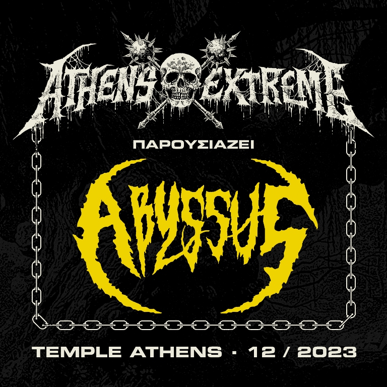 Οι death metal overlords Abyssus είναι ένα σημαντικότατο κεφάλαιο για την ελληνική σκηνή. Με φονικές ζωντανές εμφανίσεις και δισκογραφικές κυκλοφορίες παγκόσμιων standards, με πιο πρόσφατο το επικό "Death Revival" του 2022, δεν σταματούν να αυξάνουν το fanbase τους και η εμφάνισή τους στο Athens Extreme Festival αναμένεται με ανυπομονησία.