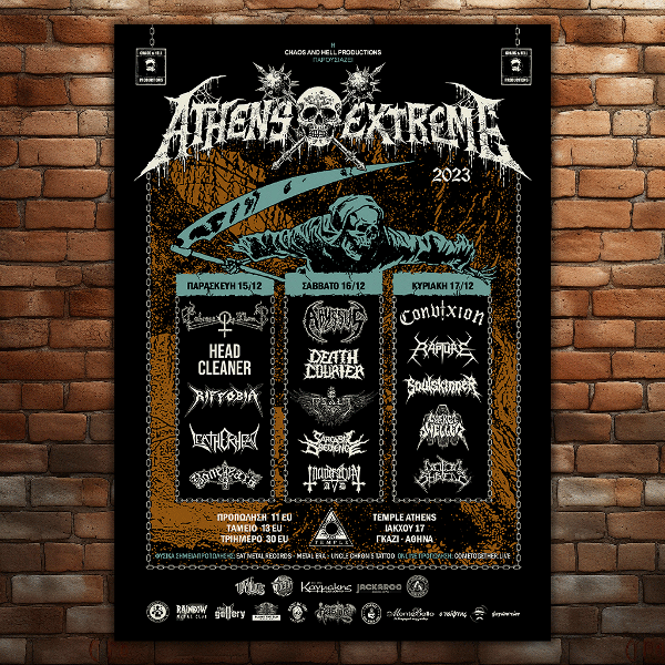 Η Chaos & Hell Productions και το Temple παρουσιάζουν την επιστροφή του Athens Extreme! Αφιερωμένο στον σκληρό και ακραίο ήχο, το underground festival Athens Extreme, στηρίζει φέτος εμφατικά και κατ αποκλειστικότητα την εγχώρια σκηνή, φέρνοντας κοντά σας 15 κορυφαία σχήματα από κάθε παρακλάδι της αγαπημένης μας μουσικής, μέσα σε 3 ημέρες, στον συναυλιακό Ναό της Αθήνας.