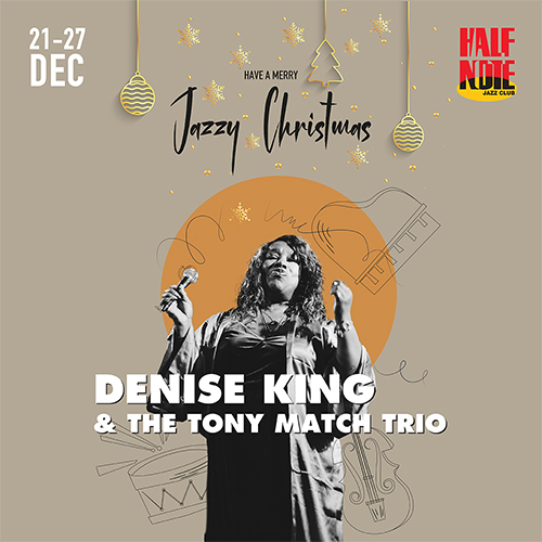 Από 21 έως και 27 Δεκεμβρίου, η σπουδαία Denise King συνοδευόμενη από το εξαιρετικό τρίο του παλιού της συνεργάτη Tony Match, έρχεται να μας μαγέψει στη σκηνή του Half Note και να απογειώσει την feelgood διάθεση με περισσή ενέργεια.….Have yourself a Merry Jazzy Christmas, let your heart be light, next year all our troubles, will be out of sight!