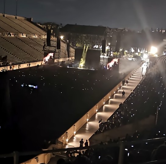 Παρασκευή βράδυ στο Παναθηναϊκό Στάδιο και είχε, σχεδόν, κρύο. Κρύο για τους απροετοίμαστους δηλαδή, που ξεγελάστηκαν από τη ζέστη της ημέρας και πήγαν να την πάθουν από τον αέρα. Είναι αλήθεια πως ο καιρός δεν βοηθούσε για μία συναυλία.