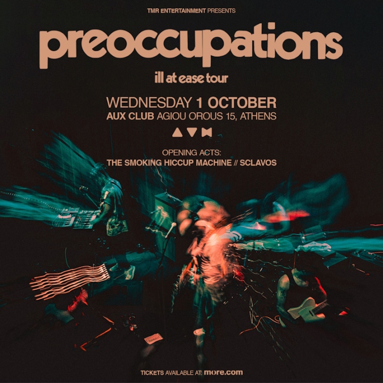 Η συναυλία στο AUX CLUB υπόσχεται μια βραδιά γεμάτη ένταση και συναισθηματική δύναμη, ένα ζωντανό ταξίδι μέσα από τον σκοτεινό, αλλά συναρπαστικό κόσμο των Preoccupations.
