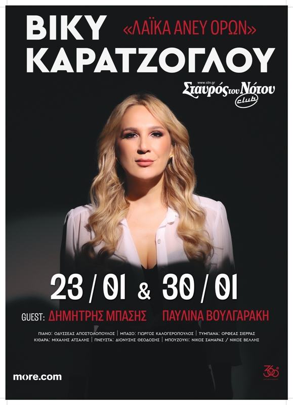 Μετά τη μεγάλη επιτυχία και τη θερμή αποδοχή των προηγούμενων παραστάσεων, η Βίκυ Καρατζόγλου επιστρέφει στη σκηνή του Club του Σταυρού του Νότου με δύο επιπλέον παραστάσεις του μουσικού προγράμματος «Λαϊκά Άνευ Όρων».