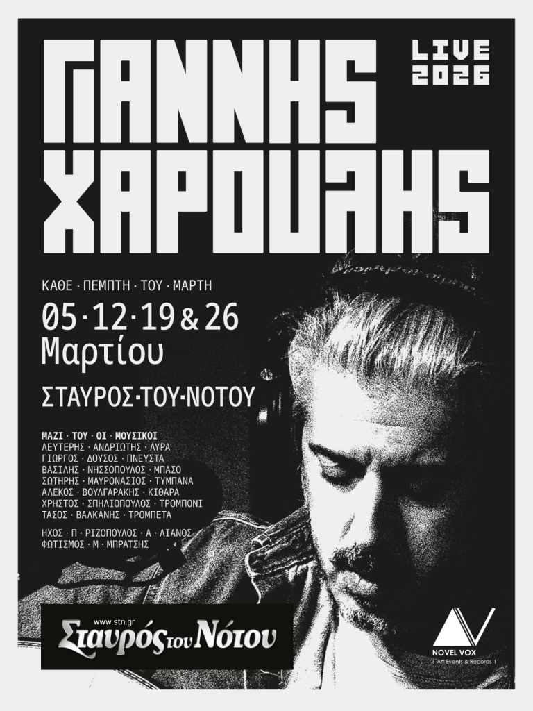 Ο Γιάννης Χαρούλης επιστρέφει στην Κεντρική Σκηνή του Σταυρού του Νότου, εκεί που χτυπάει δυνατά η μουσική καρδιά της πόλης, δεκατρία χρόνια μετά, για τέσσερις μόνο εμφανίσεις, όλες τις Πέμπτες του Μαρτίου.